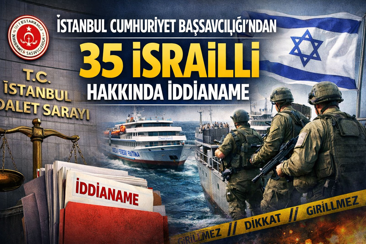Gazze’ye insani yardım ulaştırmak amacıyla yola çıkan “Küresel Direniş Filosu”na yönelik saldırıya ilişkin yürüttüğü soruşturmayı tamamladı. Başsavcılık, olayla bağlantılı olduğu değerlendirilen 35 İsrailli şüpheli hakkında iddianame hazırladı.
