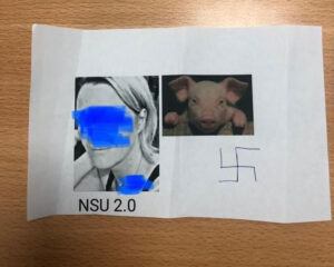 Mektupta ayrıca, Almanya’da 2000-2007 yılları arasında 8’i Türk 10 kişiyi öldürmekle suçlanan Nasyonal Sosyalist Yeraltı (NSU) terör örgütünün sembolü olan “NSU 2” imzası yer aldı.