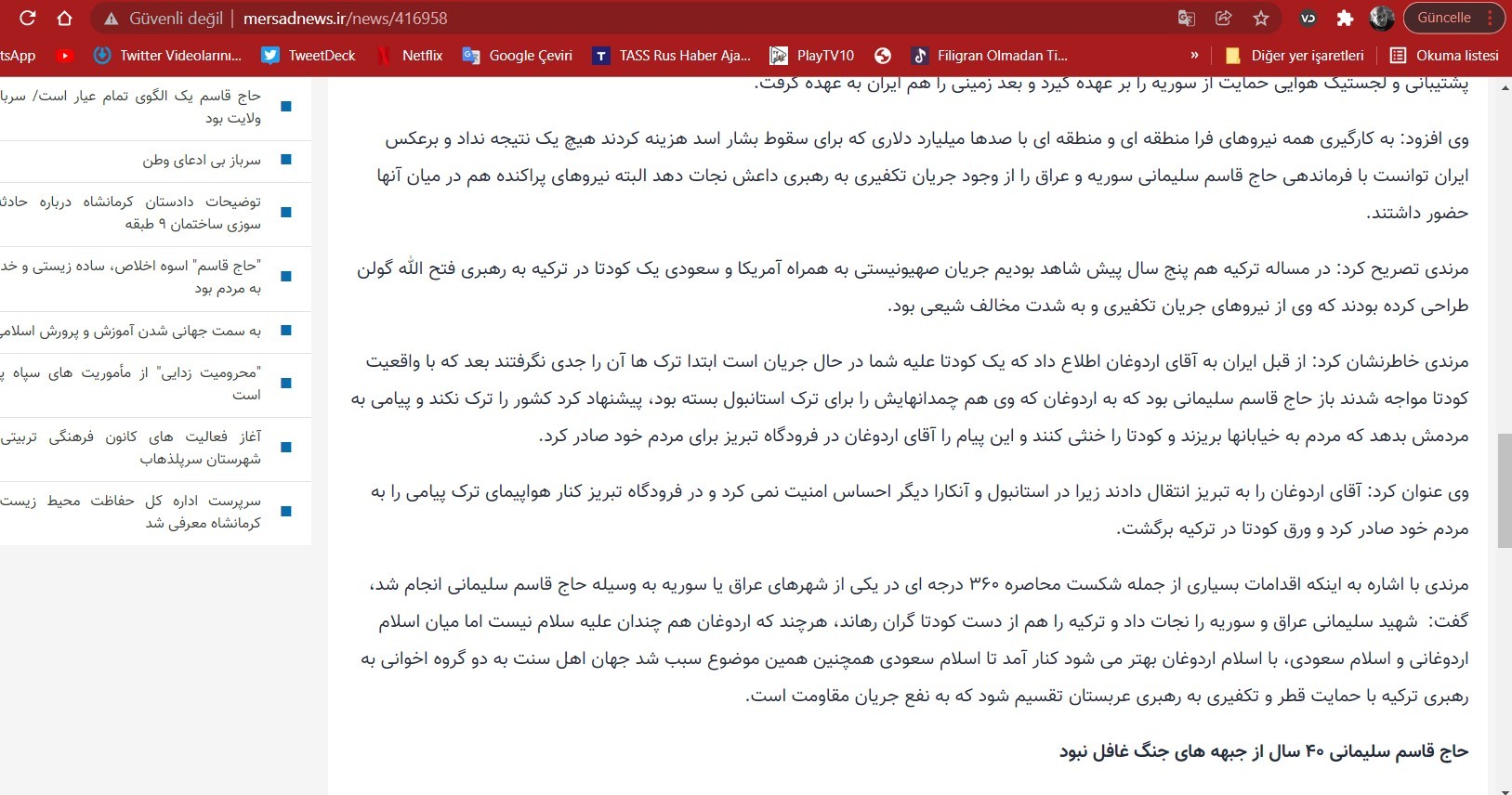 mirathaber.com –ÖZEL HABER– İran’daki zalim Ayetullah diktatörlüğü halkın özgürlüklerinin yanısıra bilgi alma ve doğruyu öğrenme haklarını da gasp ediyor. İran Devrim Muhafızları’na ait http://www.mersadnews.ir internet sitesinin 15 temmuz FETÖ darbesi ile ilgili ortaya attığı iddialar, tek kelime ile rezilce bir yalan.
