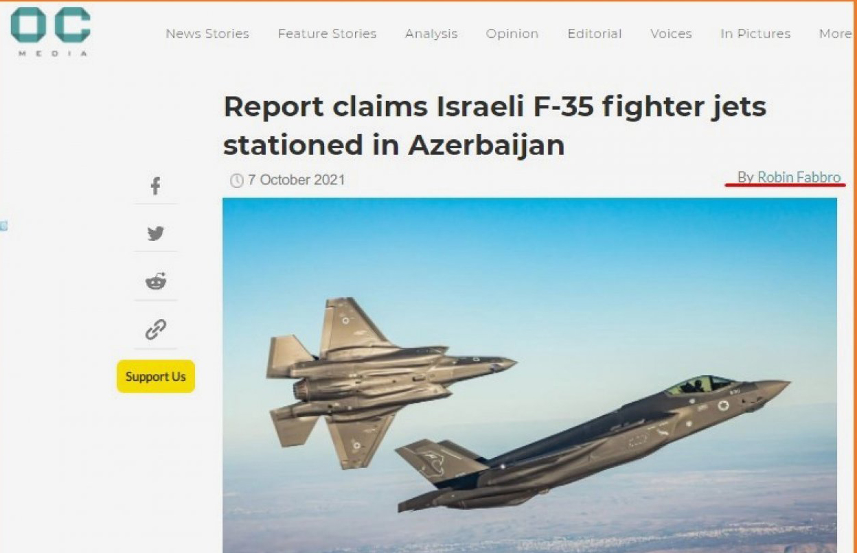 Makale şu cümlelerle başlıyor: “İsrailin 2 F-35 hayalet uçağı kalıcı olarak Azerbaycanda konuşlandırıldı. Bu haber üst düzey İsrail askerlerine atıfta bulunarak bildirildi”. Böylece, İngiltere`nin Arapça sitesinin isminin zikredilmesinin istemeyen, ismi belirsiz İsrail askeri yetkililerine dayanan medya kuruluşumuzun ne kadar profesyonel olduğunu görüyoruz.