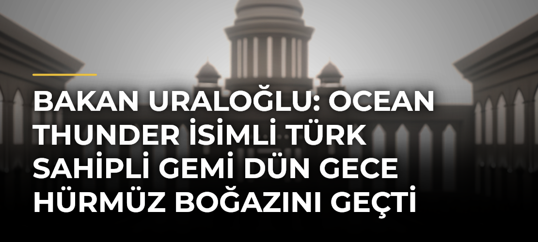 Bakan Uraloğlu: Ocean Thunder isimli Türk sahipli gemi konusunda önemli gelişmeler yaşanıyor. Bakan Uraloğlu, Türk sahipli Ocean Thunder isimli geminin dün gece Hürmüz Boğazı’ndan geçtiğini açıkladı. Bu durum, Türkiye’nin denizcilik alanındaki uluslararası etkinliğini artırma hedefi doğrultusunda önemli bir gelişme olarak değerlendiriliyor.