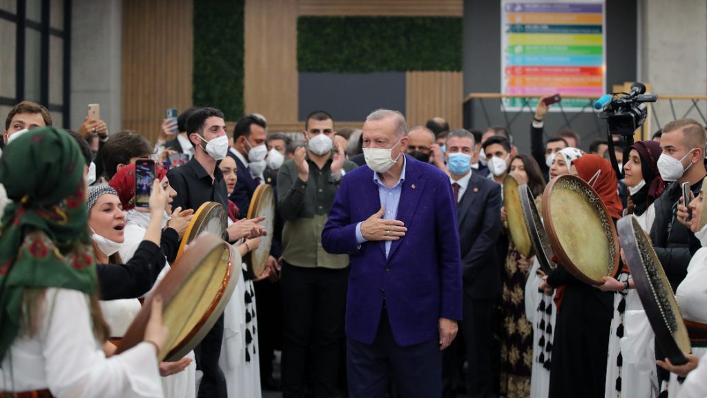Cumhurbaşkanı Erdoğan’ın gençlerle buluşması Diyarbakır Kayapınar Belediyesi Müzik Topluluğu’nun konseriyle sona erdi. Erdoğan, gençler ve davetlilerle Türkçe ve Kürtçe seslendirilen türküleri dinledi.