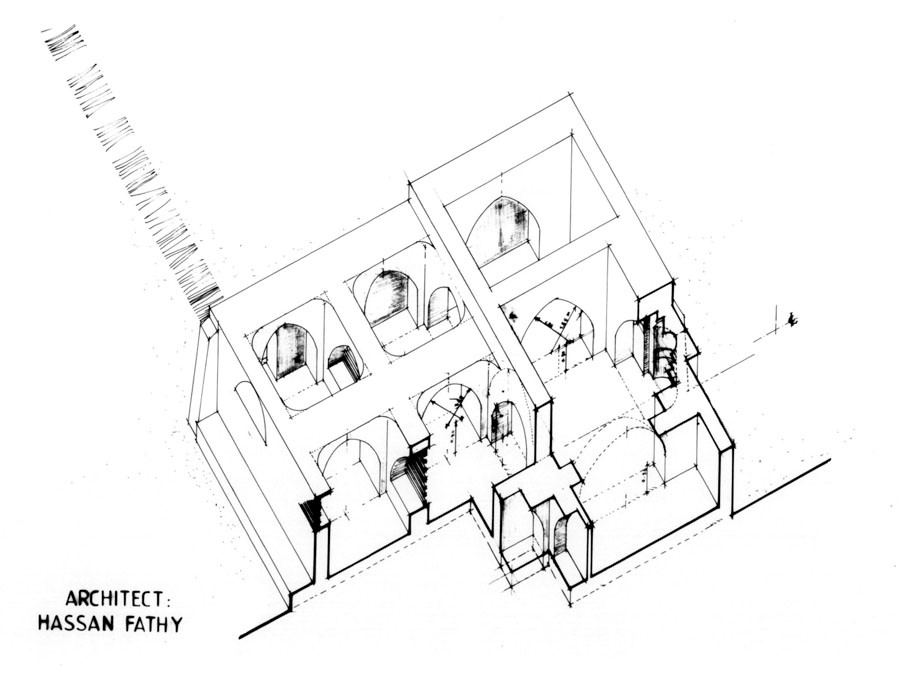 New Mexico’yu, manzara birçok Müslüman topraklarınınkine benzer olacağı ve mevcut kerpiç bina geleneği nedeniyle seçmişlerdir. Hassan Fathy’ nin çizimleri, orijinal binaların tasarımlarını kapsar. Fathy 1980’de tasarımını sunarken, tuğla yapımı ve yapım tekniklerini de sergileyen Nubyalı duvar ustalarını da beraberinde getirmiştir. Bu ustalar yerel halka inşaatın nasıl yapılacağını öğretmiş, bu şekilde yerel sürdürülebilirlik sağlanmıştır.