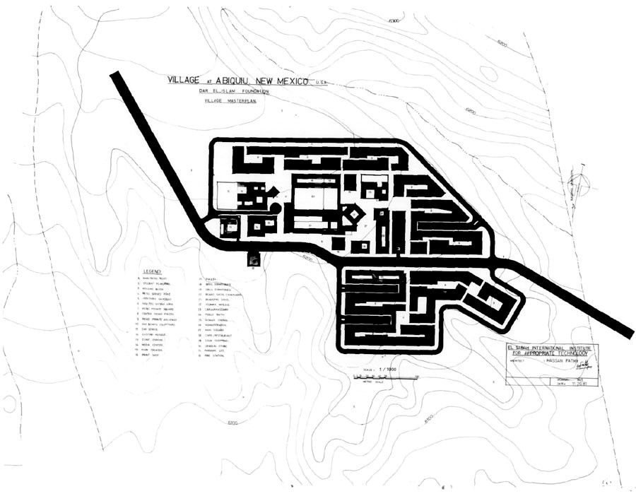 Mısırlı mimar Hassan Fathy tarafından üstlenilen topluluk projesi; Abiquiu, New Mexico’da kurulmuş kar amacı gütmeyen bir eğitim kuruluşu olan Dar al-Islam’ın merkezidir. Bu merkez bir camiyi, eğitim binalarını, konutları ve sosyal merkezleri kapsamaktadır. Amerikalı Müslüman Bilim Adamı Nuridin Durkee ve Suudi işadamı Sahl Kabbani, projeyi 1979’da Suudi Arabistan Kralı Khalid ibn Abdul Aziz’in ailesinden destek alarak kurmuşlardır.