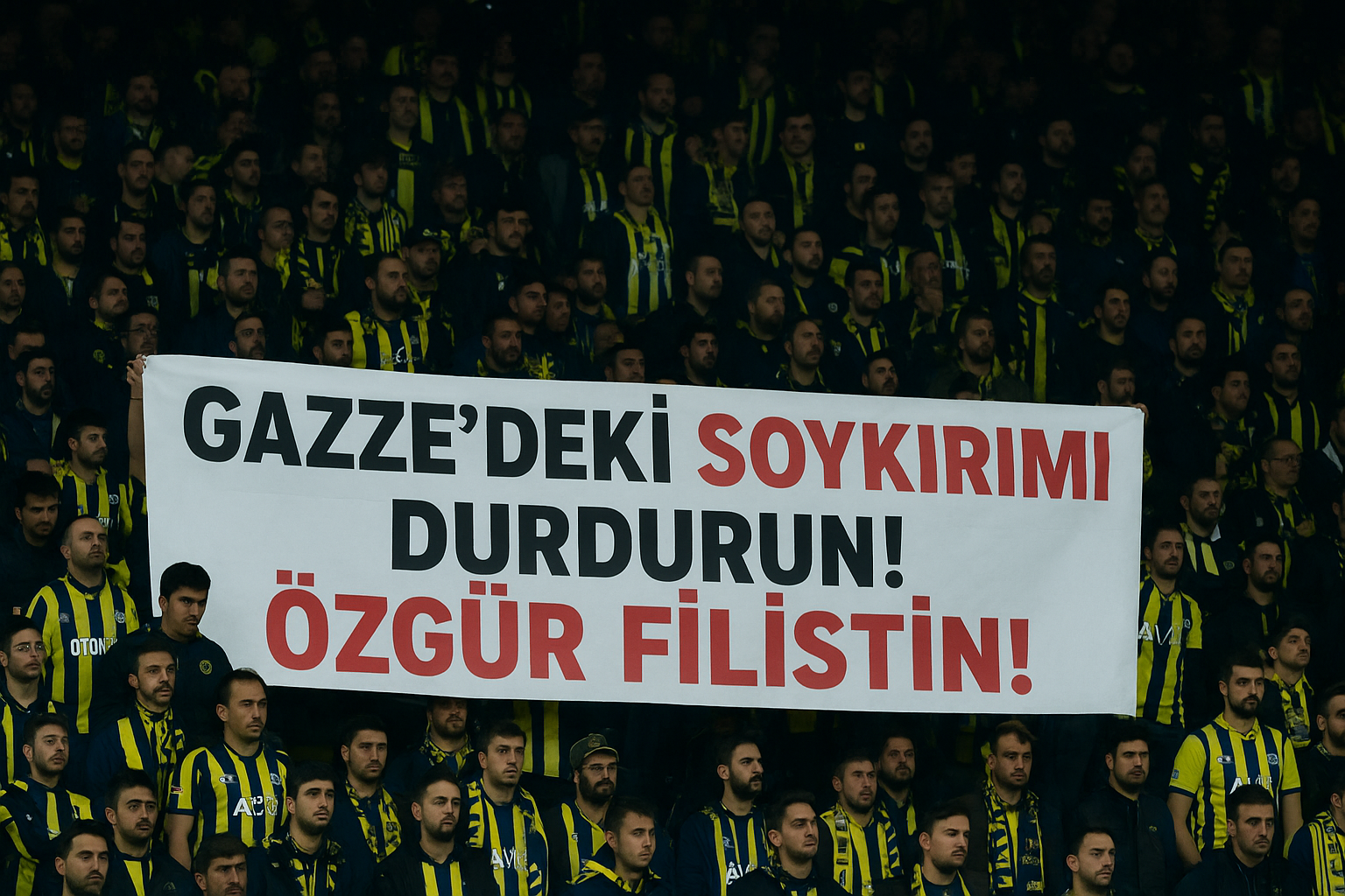 Fenerbahçe taraftarları, tribünlerde açtıkları pankartla Gazze’de yaşanan insanlık dramına dikkat çekti. Sarı-lacivertli taraftarlar, “Gazze’deki soykırımı durdurun! Özgür Filistin!” yazılı pankartı tribünlerde dalgalandırarak Filistin halkına destek verdi.