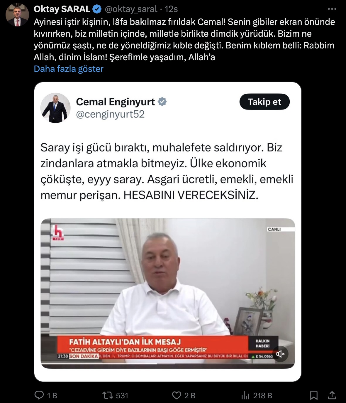 “Fırıldak” Tartışması Büyüyor: Cemal Enginyurt ve Oktay Saral Sosyal Medyada Karşı Karşıya