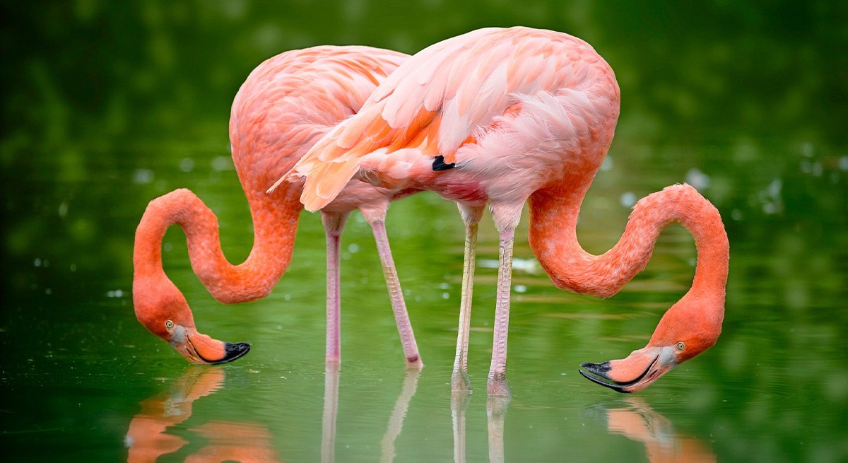 Flamingolar genellikte sürü halinde hareket eder ve sığ sularda beslenirler
