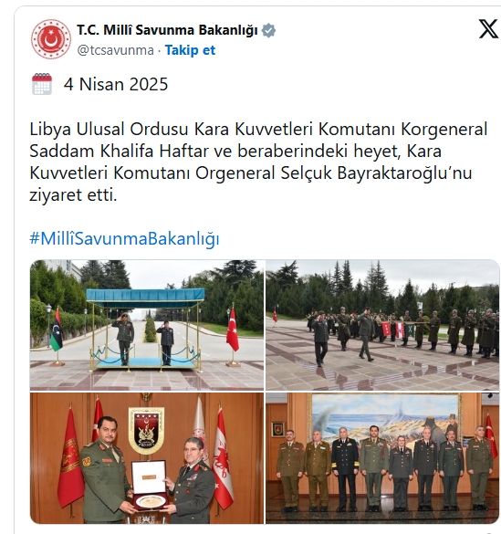 Libya’nın doğusunu kontrol eden General Halife Hafter’in oğlu ve Kara Kuvvetleri Kurmay Başkanı Saddam Hafter, İstanbul’a geldi. Ziyareti kapsamında, hem Milli Savunma Bakanı Yaşar Güler hem de Trablus merkezli Ulusal Birlik Hükümeti’nin İçişleri Bakanı İmad Trablusi ile bir araya geldi.