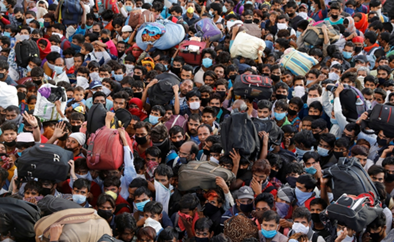 Hindistan’da iç göç işçisi istihdam eden işletmelerin kapatılması, birçoğunun çalıştığı yerde uyuduğu ve yeyip içtiği göz önüne alındığında, evsizlerin sayısını artırdı. Bütün aileler de dahil olmak üzere Delhi’deki yüzbinlerce işçi, tavalarını ve battaniyelerini sırt çantalarına koyarak, otoyollarda yürüyüşe başladı. Bazıları yüzlerce kilometre yürümeyi planladı. Ancak bunlar Delhi il sınırına ulaştıklarında, polis tarafından dövüldü.