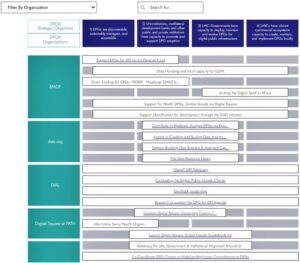Burada özellikle kısa adı Digital Public Goods Alliance (DPGA) olan Dijital Kamu Malları İttifakı’na biraz açmakta fayda vardır. Dijital Kamu Malları İttifakı hem Gates hem de Rockefeller vakıflarını ve bu projeye ortak olan kuruluşlar ve çeşitli hükümetlerle birlikte “dijital kamu mallarını geliştiren faaliyetleri” yol haritasında gizlemeden ve saklamadan listeliyor. (3)