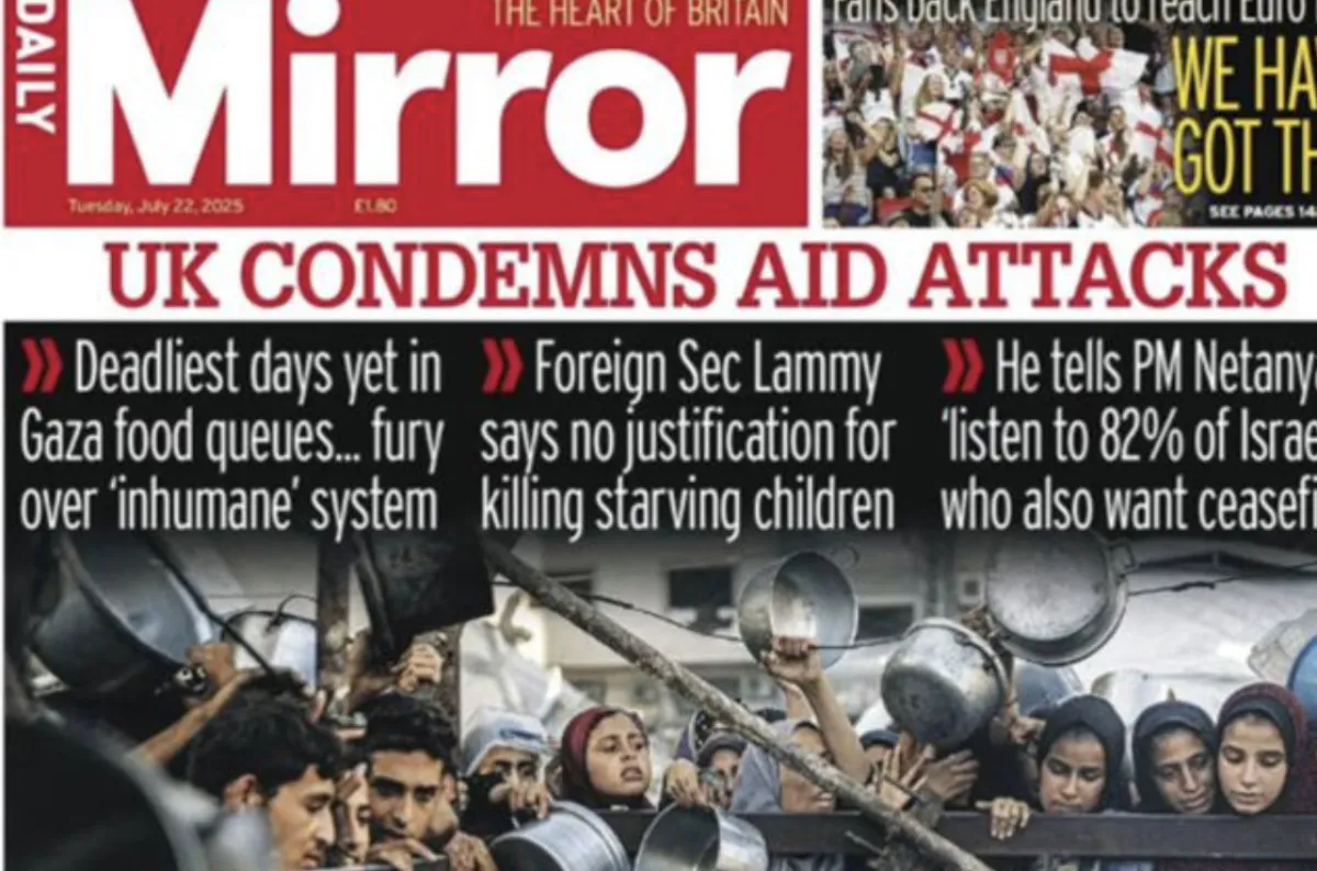 İngiliz Daily Mirror gazetesi, “Gazze’de Açlık: İnsanlığın Son Testi” başlıklı manşetinde, Batılı devletlerin sessizliğini eleştirdi. Gazeteye konuşan bazı yardım görevlileri, İsrail’in geçiş noktalarını keyfi olarak kapattığını ve Gazze’de “bir soykırım taktiği olarak açlığın” kullanıldığını ifade etti.