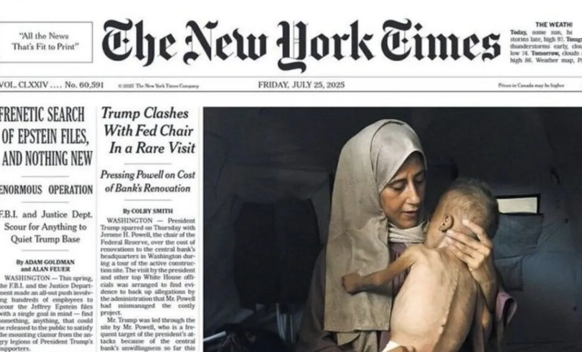 ABD’nin önde gelen gazetelerinden New York Times, Gazze’de açlıktan ölen bir çocuğun fotoğrafını kullanarak, “Çocuklar Açlıkla Ölüyor, Dünya Sessiz” başlığıyla çıktı. Haberde, Washington yönetiminin İsrail’e yönelik hiçbir yaptırım uygulamaması ve sadece sözlü uyarılarla yetinmesi sert dille eleştirildi.