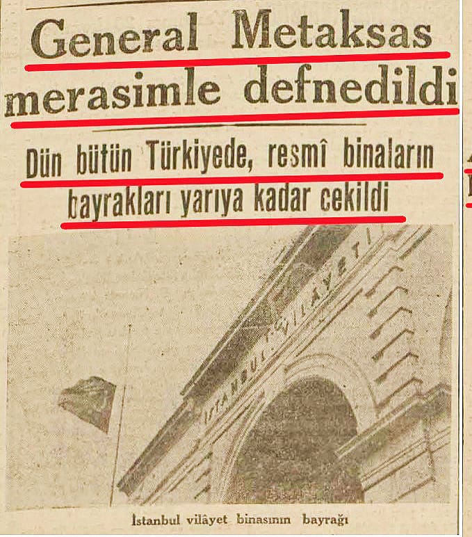 Yunan diktatörü Metaksas öldüğünde, ülkemizde milli yas ilan edilmiş ve bayraklar yarıya indirilmiş!