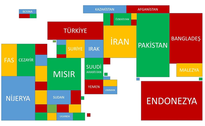 Başta Asya ve Afrika’da, az sayıda Avrupa’da üç kıtaya dağılmış 250 bin ile 250 milyon arasında nüfusu olan elli iki egemen Müslüman çoğunluklu ülke var. Nüfus olarak Müslüman çoğunluklu 52 ülkenin Müslüman olmayanlar dahil toplam nüfusu şu anda 1,6 milyar civarındadır. Küresel Müslümanlar 1,8 milyarlık bir sayı, on yıldan uzun bir süre içinde 2b’ye yaklaşıyor. Bu, gelecek yüzyılda veya insanlığın üçte birini oluşturacak. Sahra Çölü’nü çevreleyen küçük tarım şeritlerinde olanlar bile bu yüzyılın sonunda bir milyara ulaşacak.