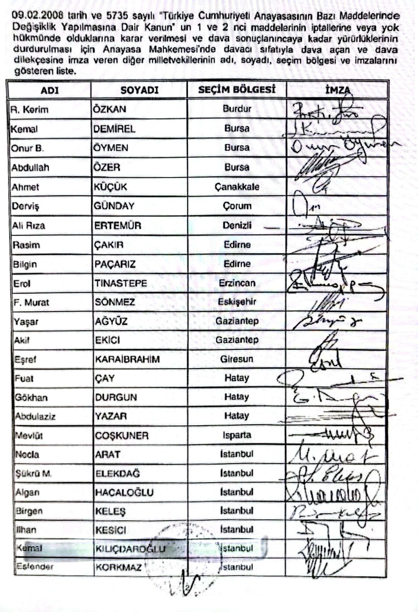 İMZA ATANLARIN ARASINDA KEMAL KILIÇDAROĞLU DA VARMEMURLAR VE ÜNİVERSİTE ÖĞRENCİLERİ BAŞÖRTÜSÜ TAKAMAZ DİYE: Dilekçede imzası olan bazı Milletvekillerinin isimleri;