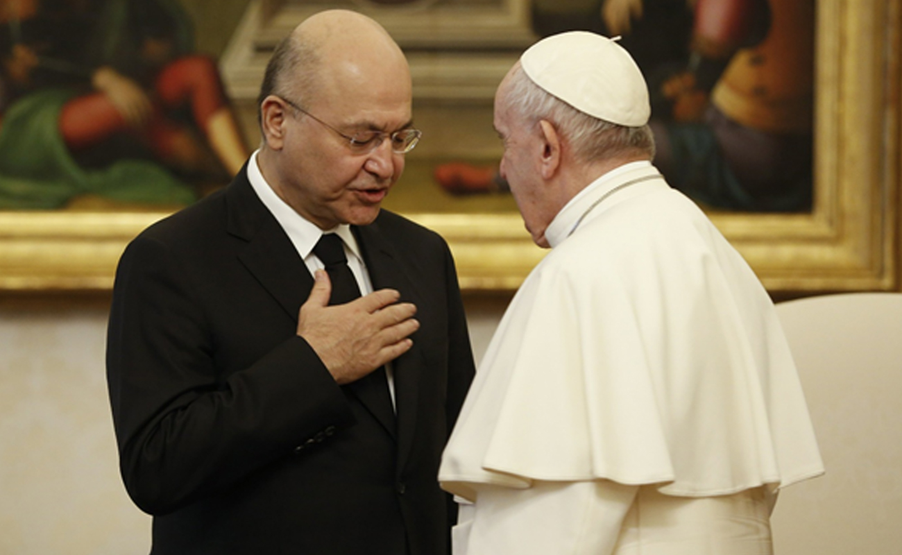 Cumhurbaşkanı Berham Salih, papa ile yaklaşık yarım saat özel görüşmede bulundu ve ardından Vatikan’ın iki üst düzey dışişleri yetkilisi olan Kardinal Pietro Parolin ve Başpiskopos Paul Gallagher ile bir araya geldi. Görüşmelerde “ulusal egemenliğe saygı için uygun çözümler aranması” istendi.