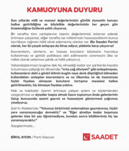Saadet Partisi’nden söz konusu sözlerle ilgili açıklama yaptı.