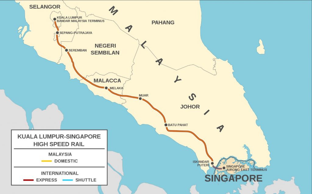 Singapur ile Kuala Lumpur arasında yüksek hızlı demiryolu bağlantısı kurma planları Her iki hükümet tarafından bu yılın ilk günü yayınlanan bir açıklamaya göre iptal edildi. 2031’de tamamlanması beklenen 350 km’lik hat, Malezya’nın başkenti ile Singapur arasındaki seyahat süresini yaklaşık yedi saatten 90 dakikaya indirecekti. Ancak Malezya, Covid-19 salgınının etkisiyle 27,3 milyar dolar maliyetini düşürmek için tasarımında değişiklik yapmak istedi. Her iki hükümet de bu değişikliklerle ilgili birkaç görüşme yaptı ve bir anlaşmaya varamadı. Bu nedenle, HSR Anlaşması 31 Aralık 2020’de sona erdi.