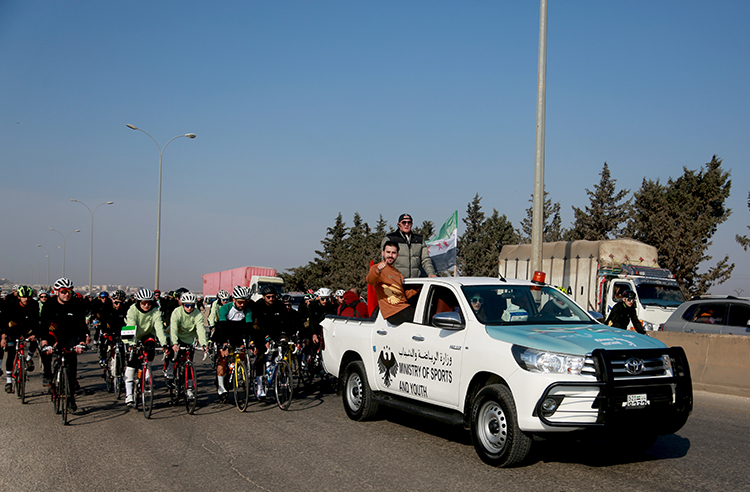 Kutlamaların en dikkat çeken etkinliklerinden biri, İdlib’de başlayan büyük bisiklet konvoyu oldu. 200’den fazla Suriyeli bisikletçiye dünyanın farklı ülkelerinden gelen 70 yamaç paraşütçüsü eşlik etti. Sporcular, “Düşmanı Caydırma Operasyonu” güzergâhını takip ederek Halep, Hama ve Humus üzerinden Şam’a ulaşacak.