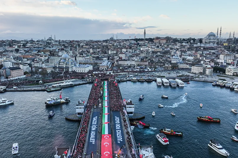 Galata Köprüsü’nü dolduran yüz binlerce kişi, Filistin davasının unutulmayacağını ve Gazze’deki zulme karşı seslerini yükseltmeye devam edeceklerini vurguladı. Katılımcılar, program boyunca tek yürek halinde Filistin için dua etti ve dayanışma mesajları verdi.