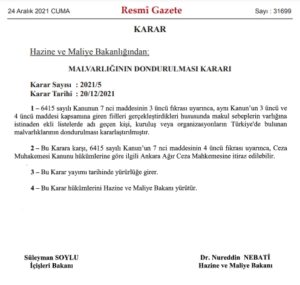 Resmi Gazete’de yayınlanan kararla 454 FETÖ üyesinin, 108 PKK’lının, 108 dini istismar eden terör örgütleri üyesinin, 89 sol terör örgütü mensubunun Türkiye’deki mal varlığı donduruldu.