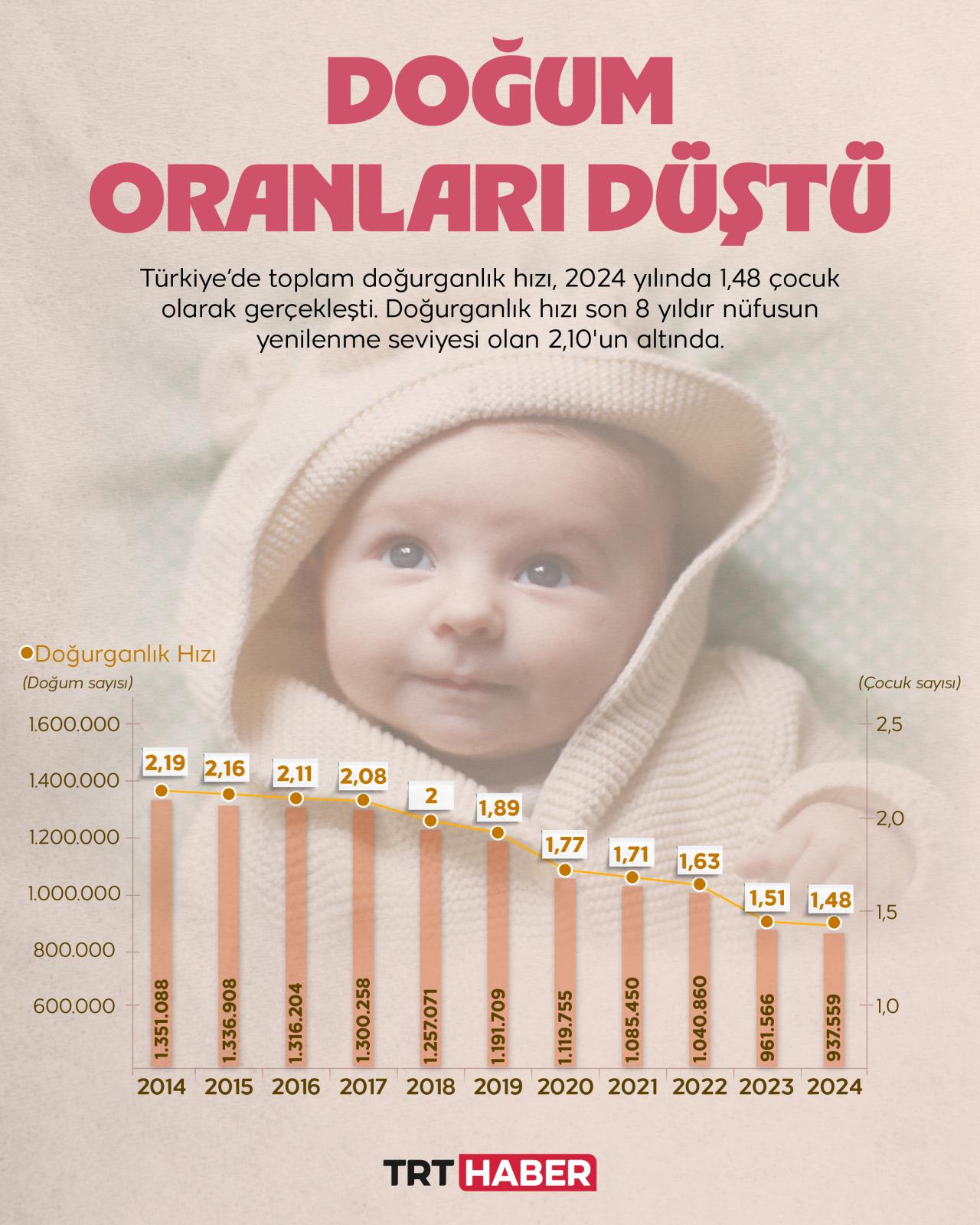 Türkiye’de doğurganlık hızının düşmeye devam ettiğini belirten uzmanlar, bu durumun genç nüfusun azalmasına ve yaşlı oranının artmasına neden olduğunu vurguluyor. 2,1 olan yenilenme seviyesinin altında seyreden doğurganlık hızı, Türkiye’nin yaşlı nüfus sorununu daha da derinleştiriyor.